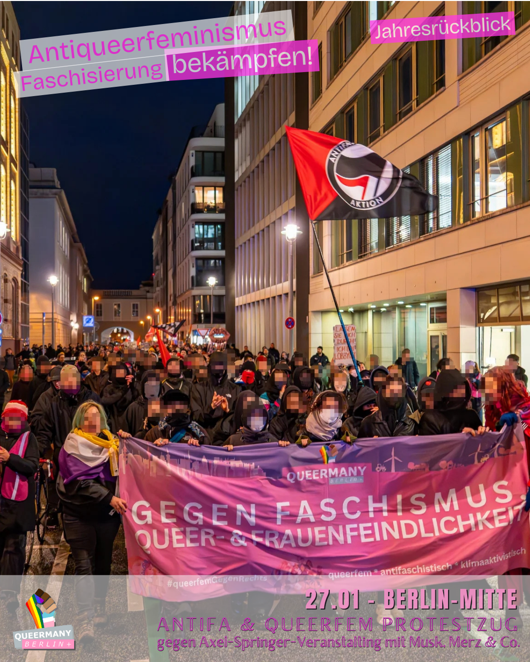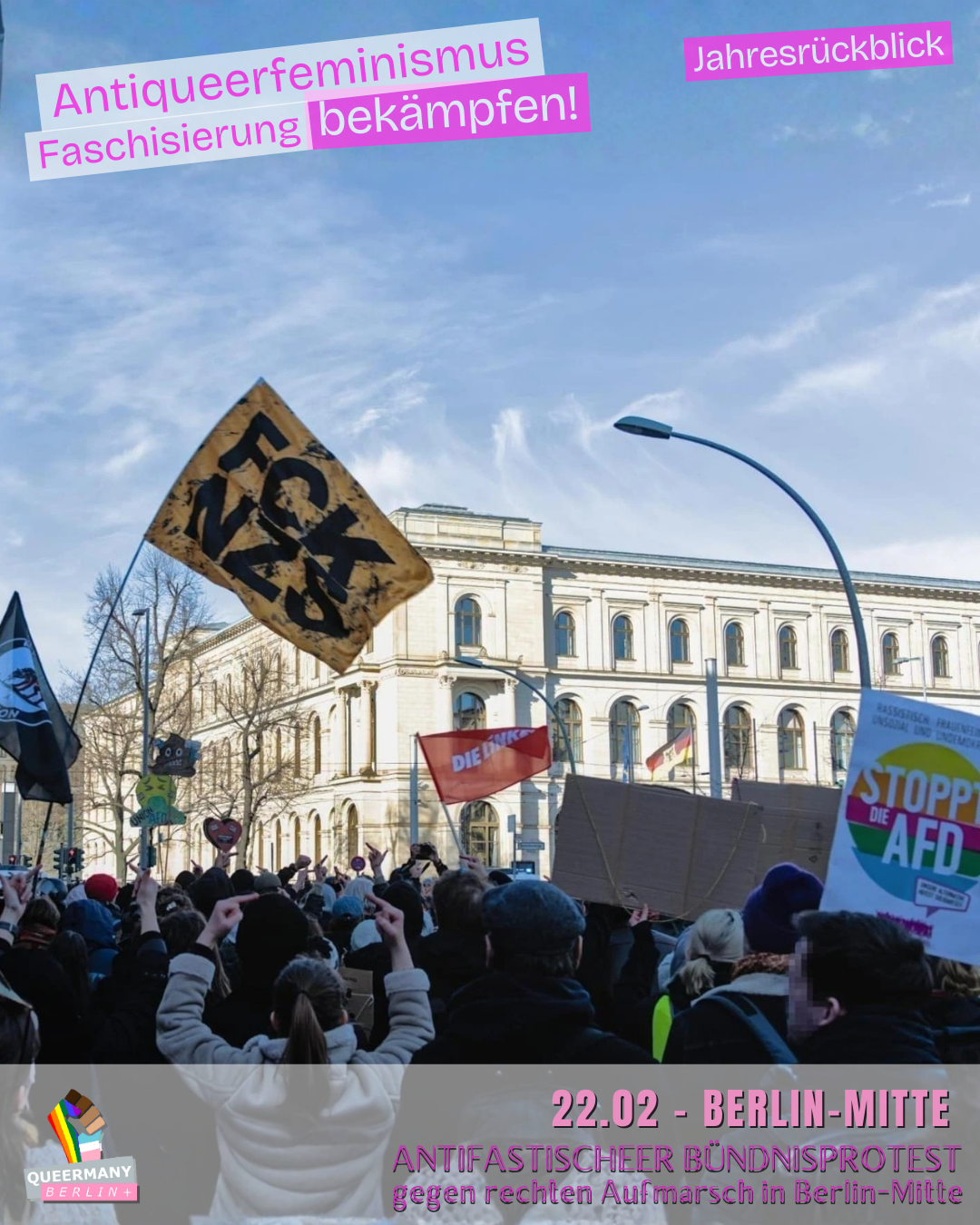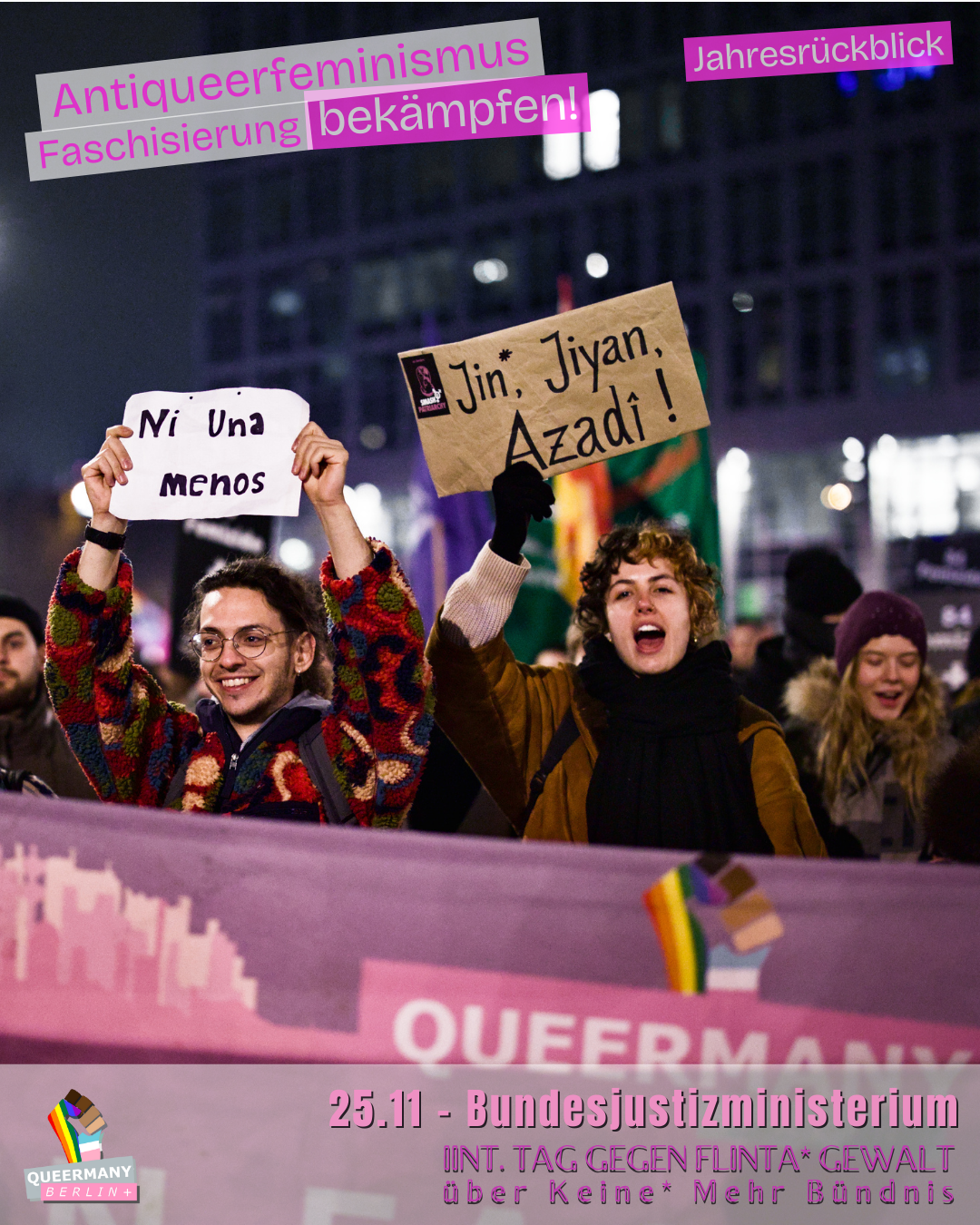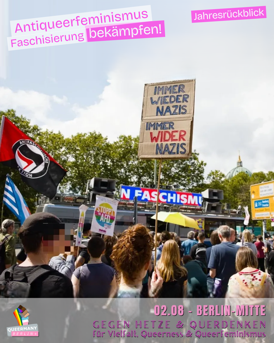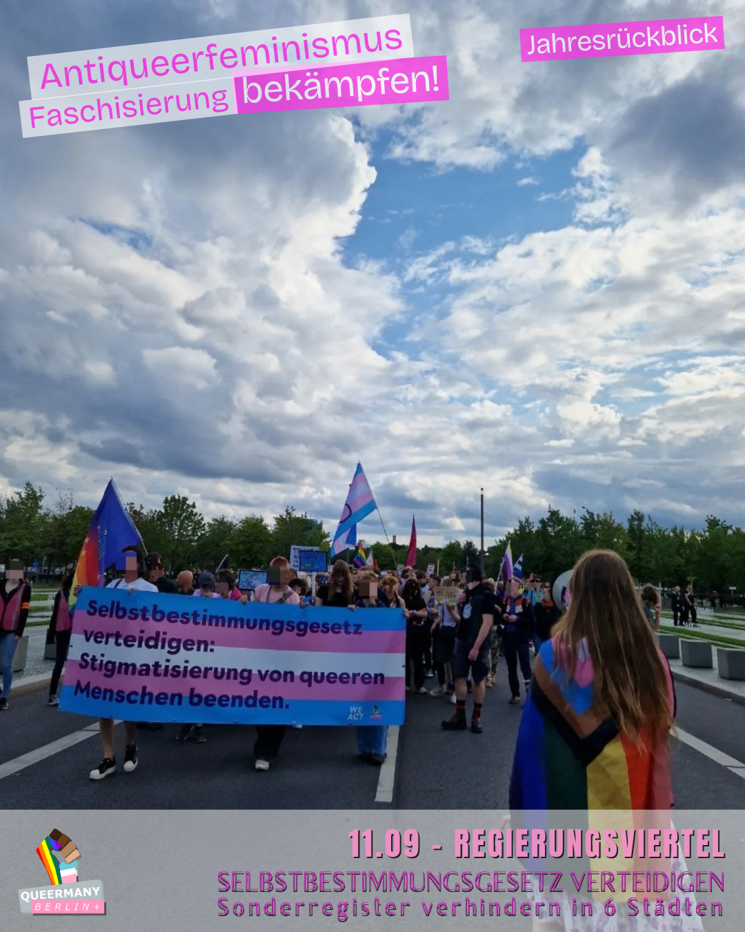 Queermany Berlin ist Teil einer bundesweiten queerfeministischen Protest- und Kampagnenbewegung, die in Berlin gegründet wurde und hier ihren Ursprung hat. Wir organisieren Proteste, entwickeln Kampagnen und machen sichtbar, wo queerfeministische Perspektiven in Politik und Gesellschaft systematisch übergangen werden.